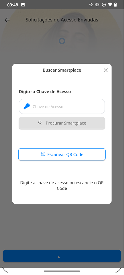 Digite a Chave de acesso fornecida pelo dono do smartplace ou escaneie o QR code.