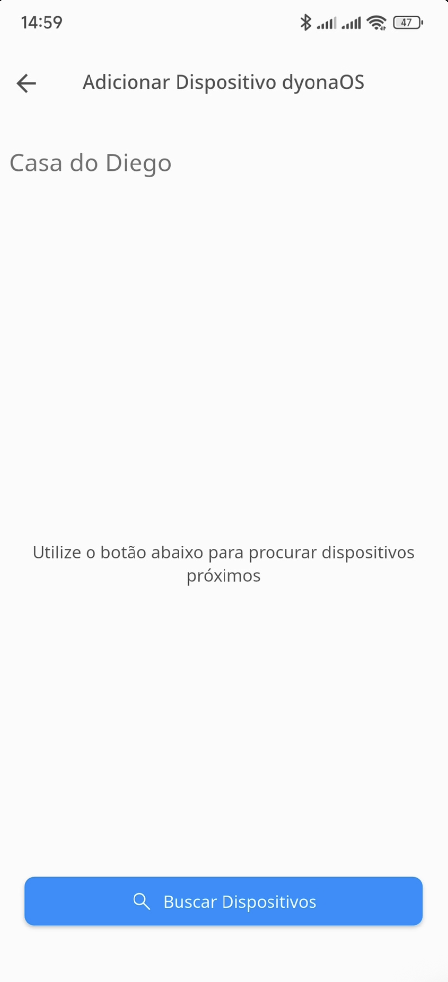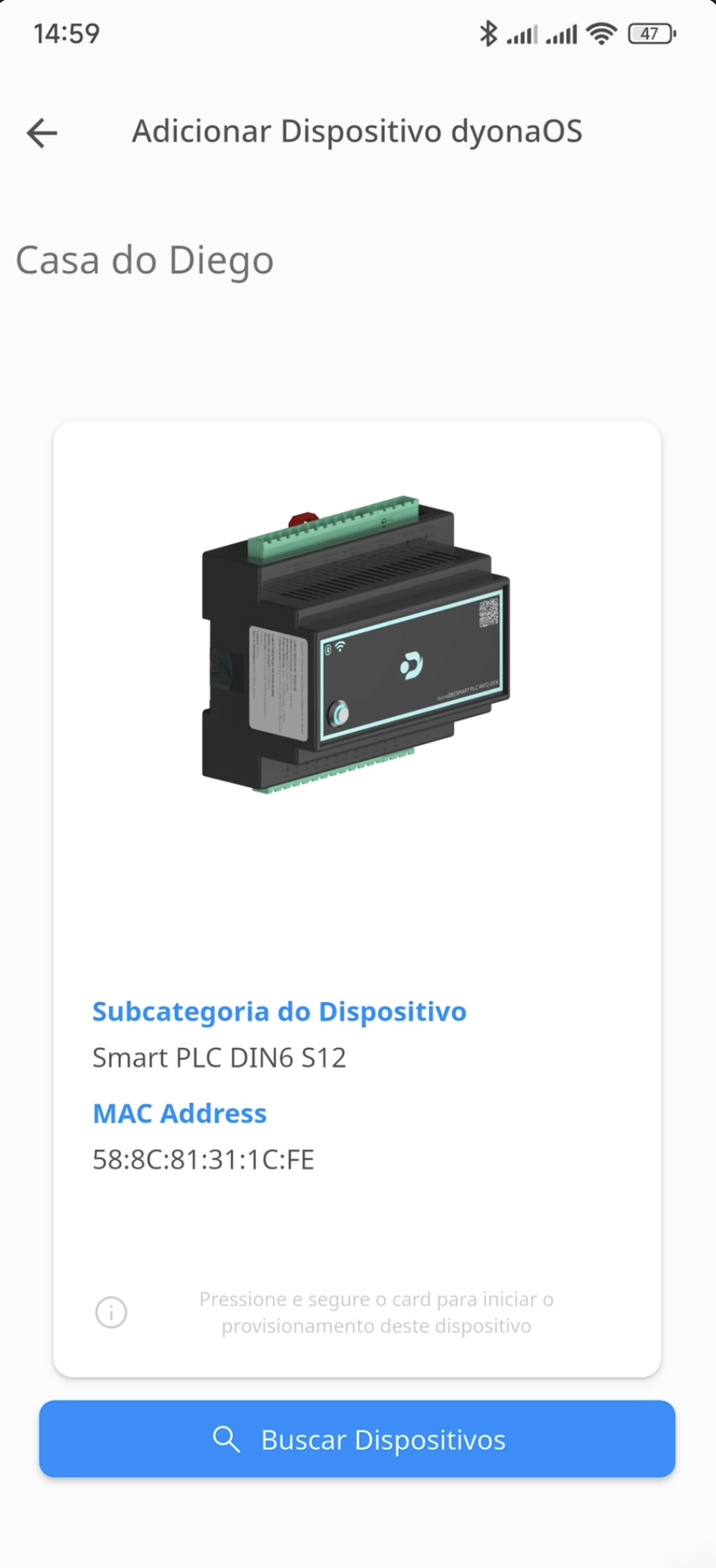 O aplicativo iniciará uma busca automática pelos dispositivos DyonaOS próximos e prontos para provisionamento.