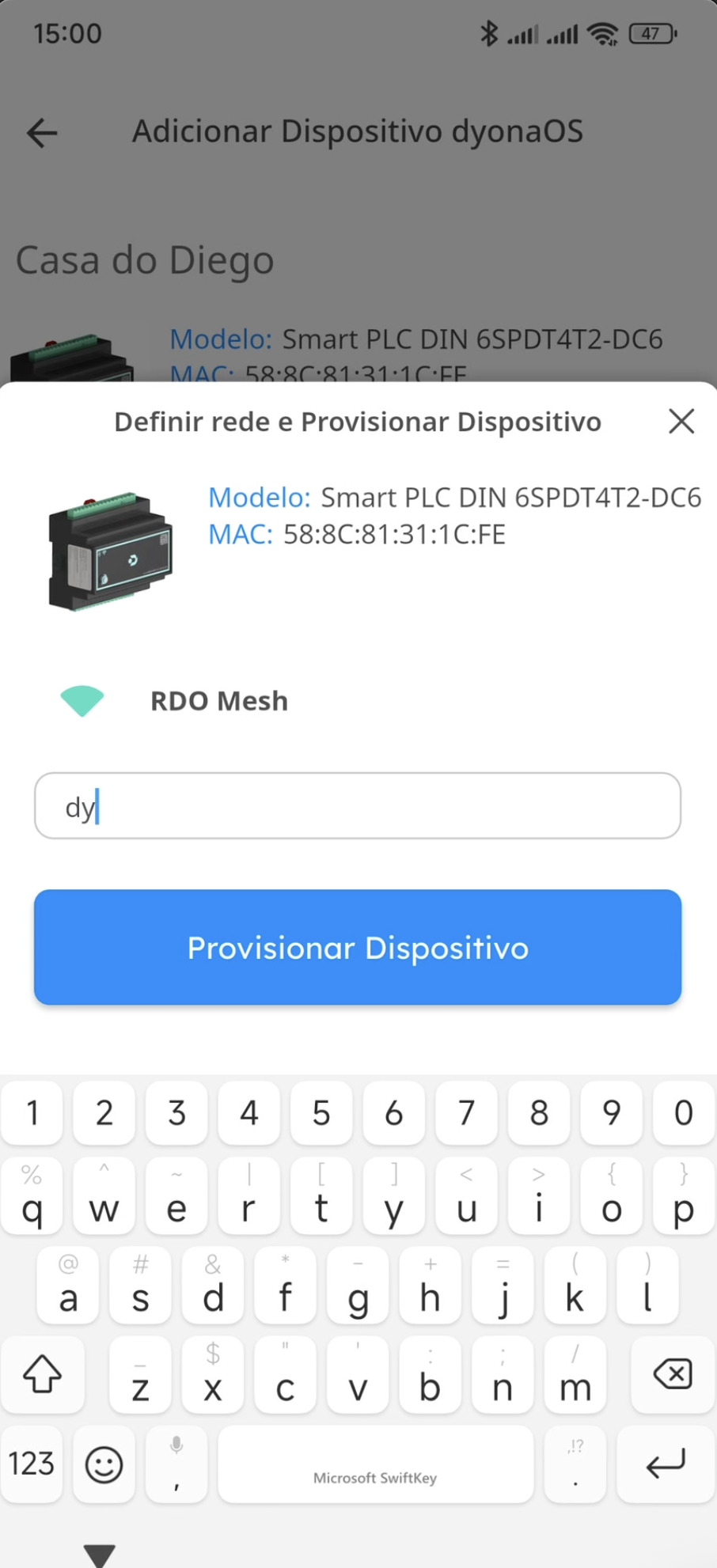 O aplicativo irá conectar o dispositivo DyonaOS à rede e integrá-lo ao seu Smartplace.