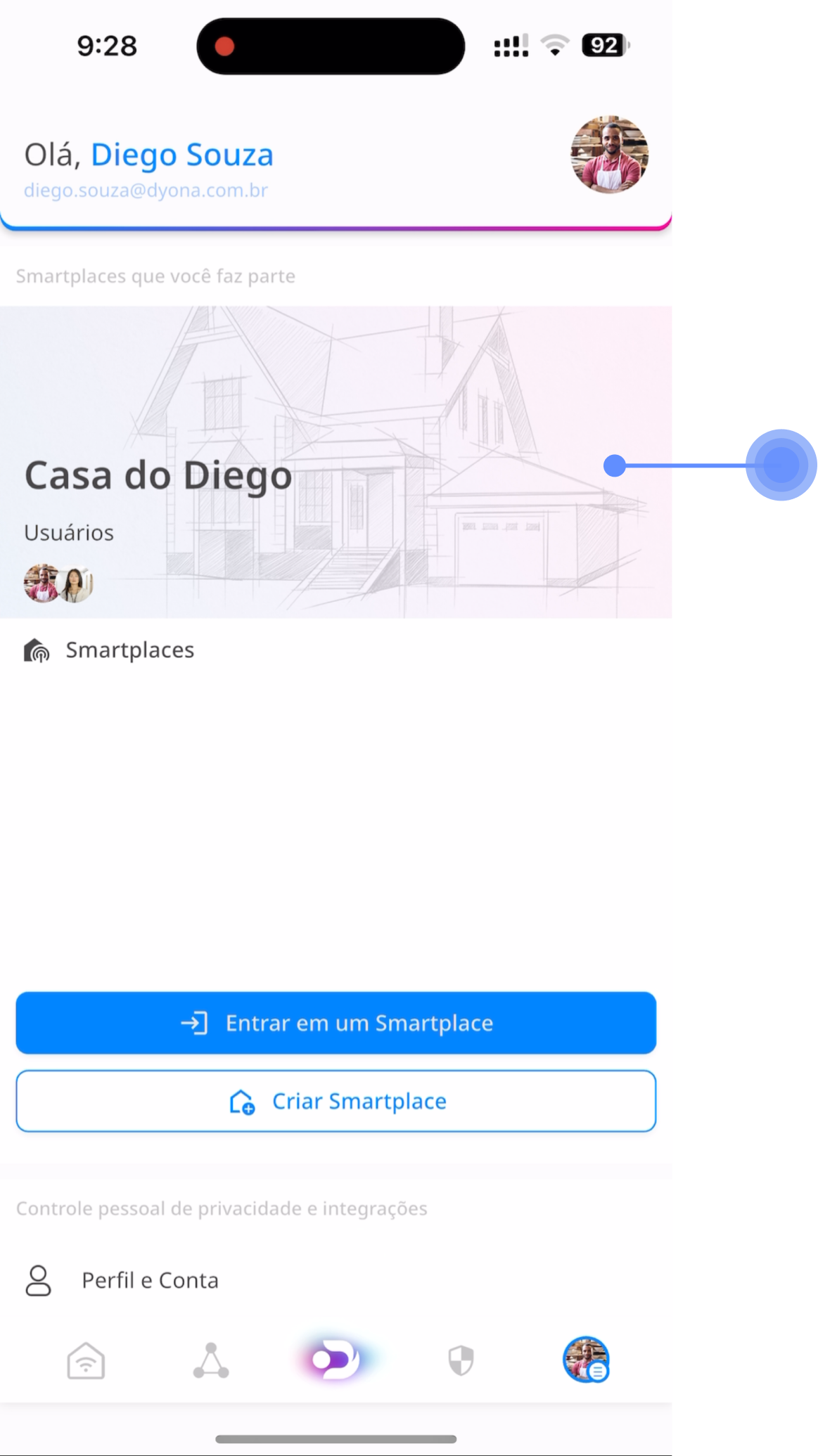 Abra o aplicativo Dyona Smartplaces no seu smartphone.