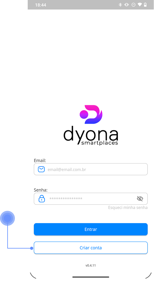 Abra o aplicativo Dyona Smartplaces no seu smartphone.