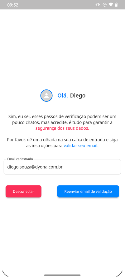 A tela do aplicativo ficará em modo de verificação de e-mail.