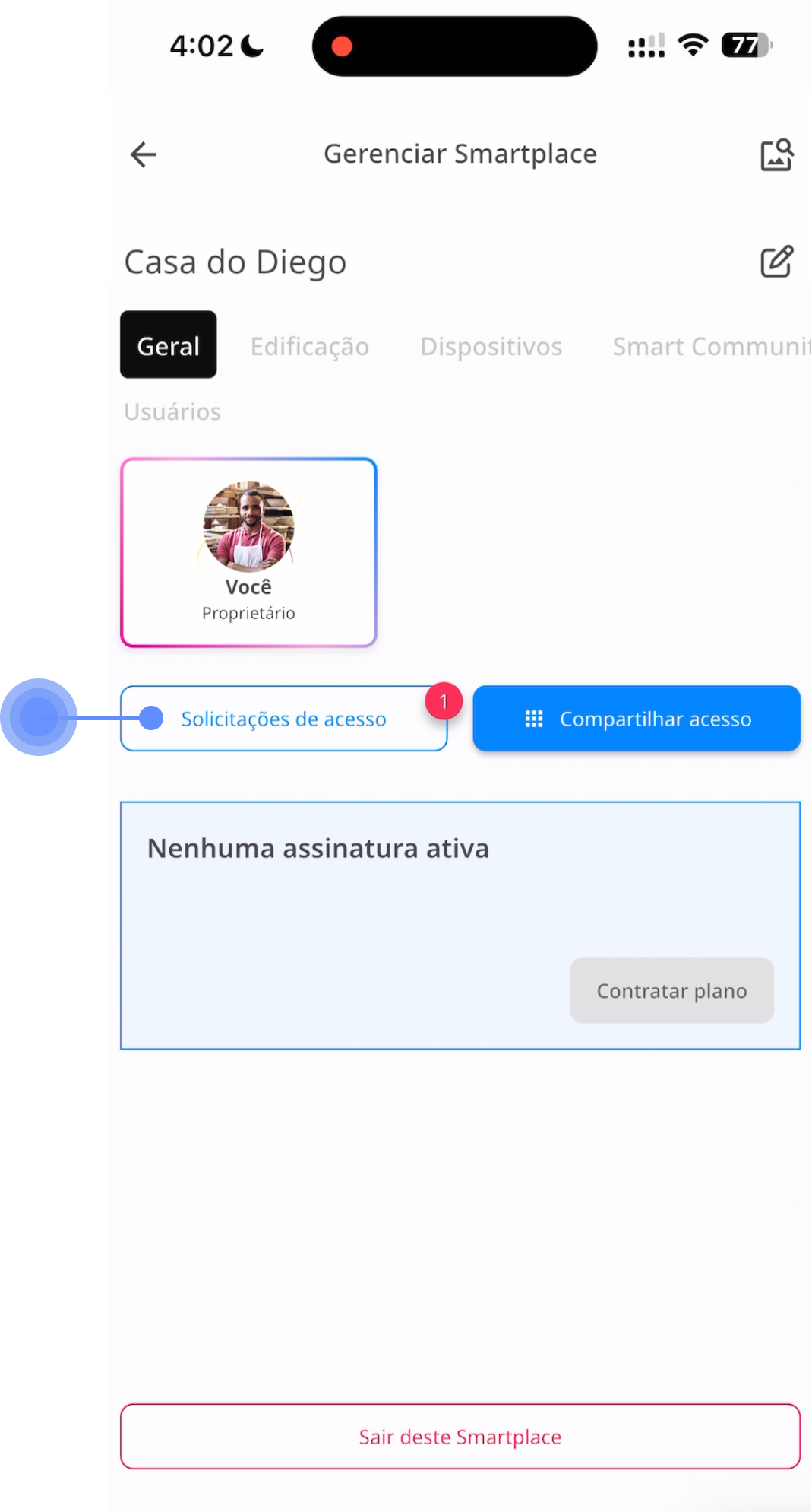 Se preferir, você pode recusar ou remover acessos posteriormente, caso o usuário não precise mais fazer parte do Smartplace.