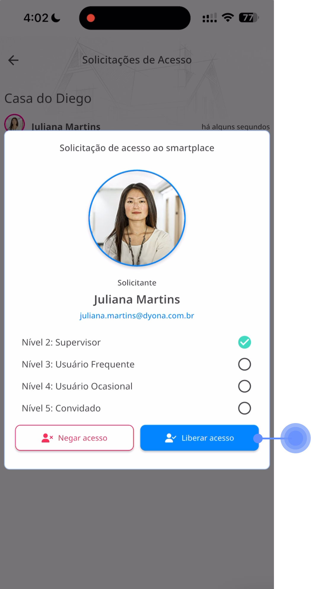 Para manter a segurança, verifique periodicamente as solicitações pendentes e os acessos ativos.
