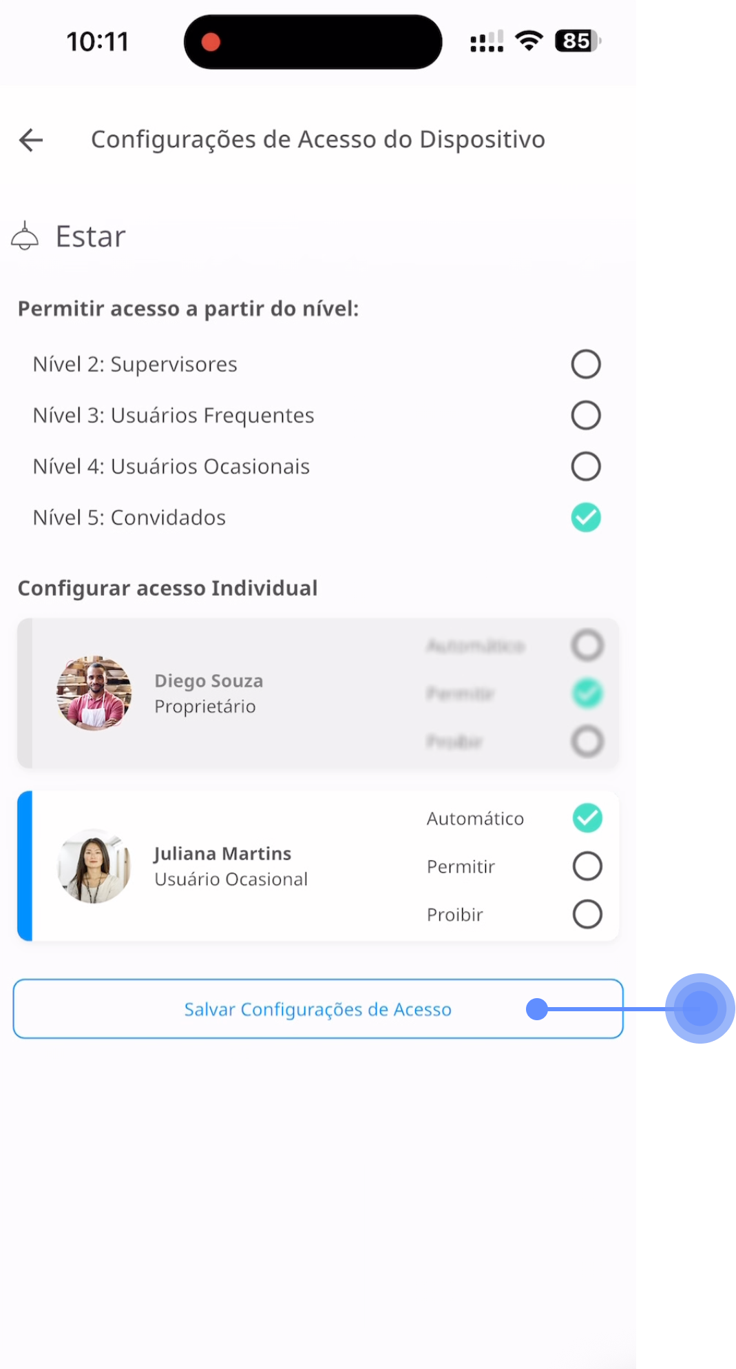 A partir de agora, os usuários incluídos no nível de hierarquia selecionado poderão visualizar e controlar o dispositivo conforme o acesso definido.