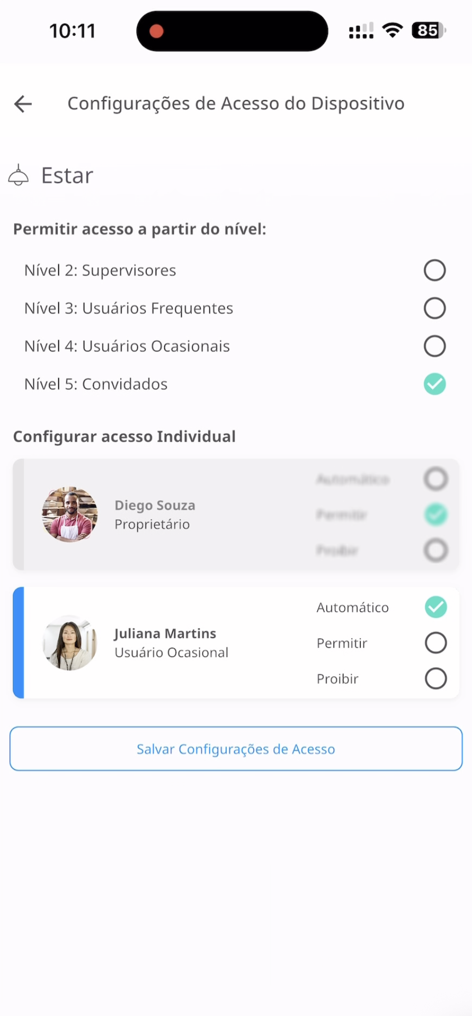 Essas permissões determinam quem pode visualizar, controlar ou editar cada dispositivo conectado.