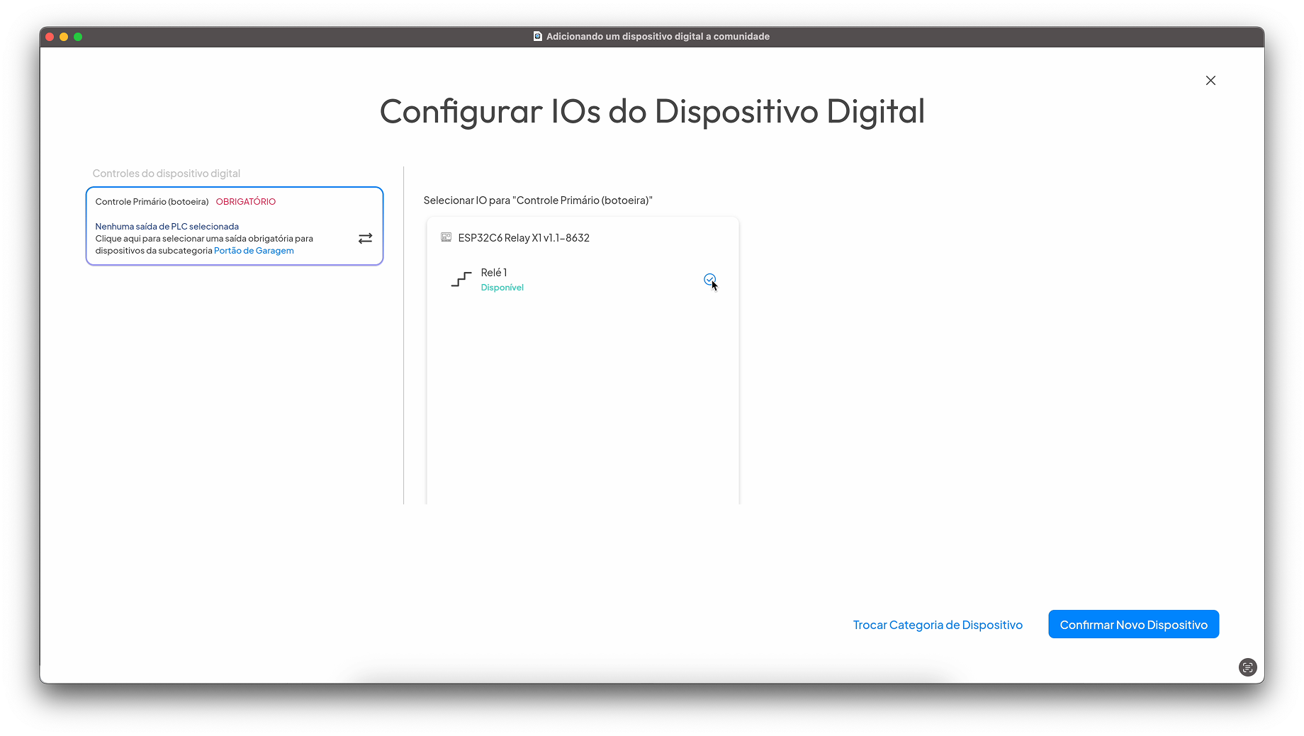 Dê um nome para o dispositivo — isso ajudará na identificação dentro da comunidade (exemplo: Luz da Entrada, Portão da Garagem, Jardim 1).