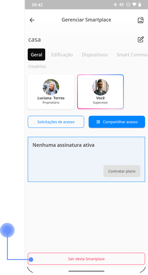 Na tela gerenciar smartplace, Toque no botão “Sair deste Smartplace”.